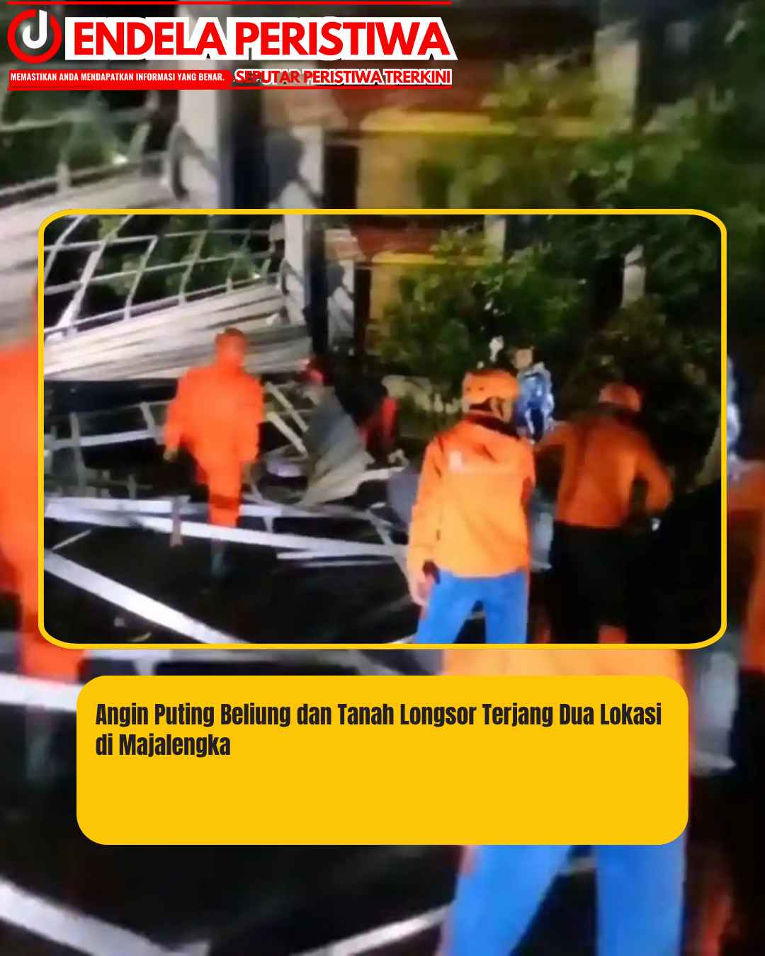 www.JendelaPeristiwa.com.ǁJawa Barat,5 November 2025- Bencana alam berupa angin puting beliung dan tanah longsor terjadi Majalengaka, Jawa Barat. Angin puting beliung merusak dua rumah dan satu indekos.