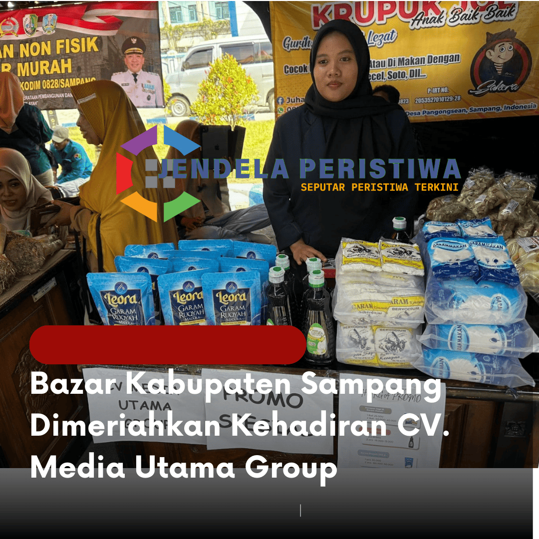 www.jendelaperistiwa.com.ǁSampang,6 Mei 2025- Suasana meriah mewarnai gelaran Bazar Kabupaten Sampang yang digelar di area Pendopo Kabupaten, dengan kehadiran berbagai pelaku usaha lokal yang turut ambil bagian. Salah satu peserta yang menarik perhatian pengunjung adalah CV. Media Utama Group, perusahaan yang bergerak di bidang produksi dan distribusi garam.