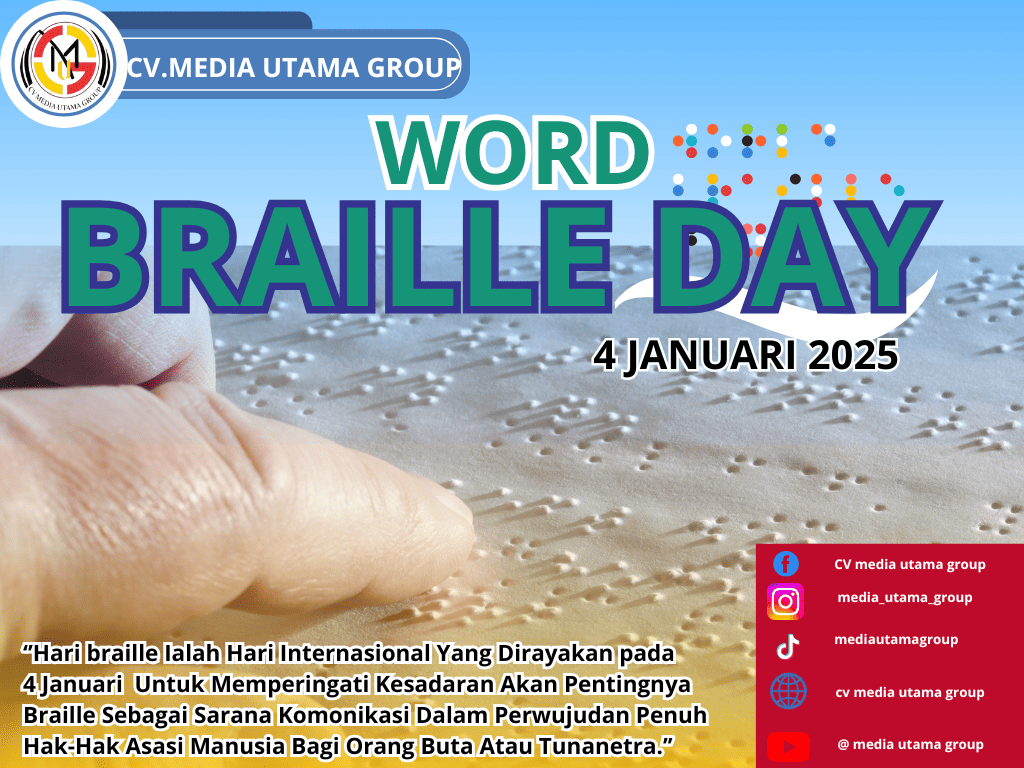 Peringatan Hari Braille Sedunia ini menjadi pengingat penting bahwa aksesibilitas bukan hanya soal teknologi atau sistem, tetapi juga tentang menciptakan dunia yang memberikan kesempatan yang sama bagi setiap individu, terlepas dari latar belakang atau kemampuan mereka. CV Media Utama Group berharap ini bisa menjadi langkah kecil menuju perubahan besar dalam menciptakan masyarakat yang lebih inklusif dan berkeadilan.