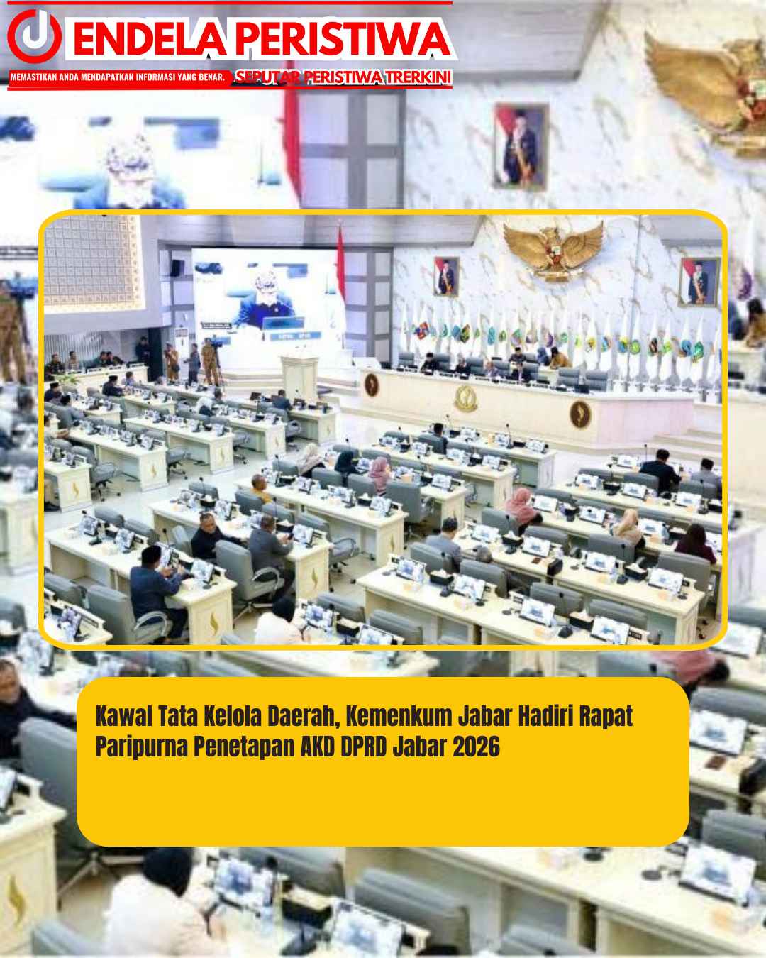 www.JendelaPeristiwa.com.ǁJawa Barat,6 Januari 2026-Kantor Wilayah Kementerian Hukum Jawa Barat (Kemenkum Jabar) terus menunjukkan komitmennya dalam mendukung penguatan fungsi legislasi dan pengawasan di tingkat daerah. Hal ini dibuktikan dengan kehadiran jajaran Kemenkum Jabar dalam Rapat Paripurna DPRD Provinsi Jawa Barat yang digelar di Ruang Rapat DPRD Provinsi Jawa Barat, Kota Bandung, pada Senin, 5 Januari 2026.