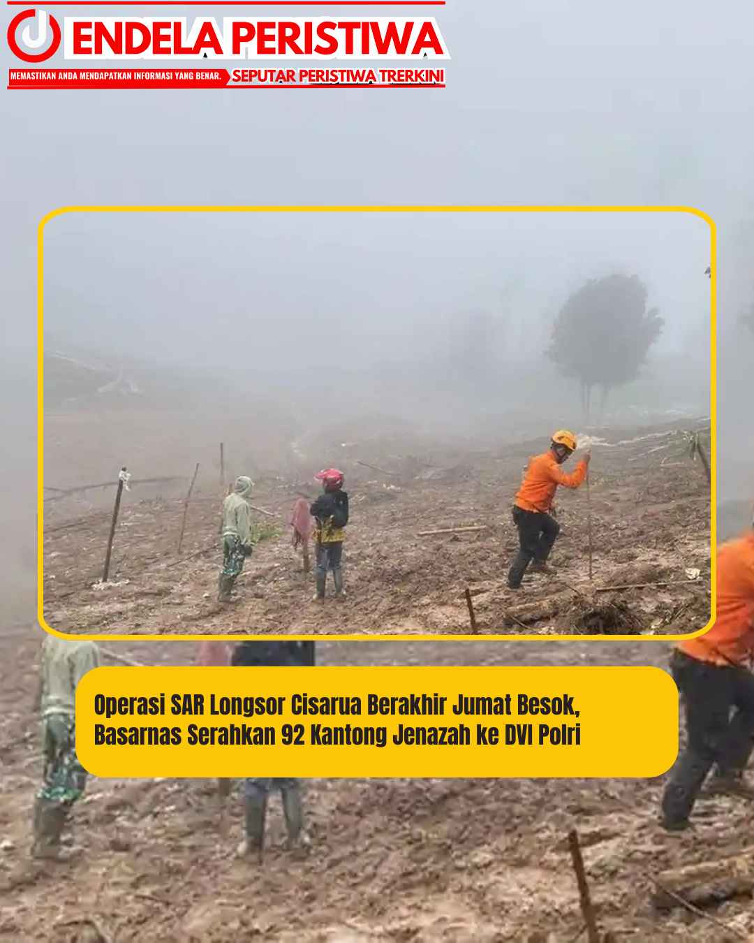 www.JendelaPeristiwa.com.ǁJawa Barat,5 Februari 2026-Dua hari menjelang berakhirnya masa pencarian resmi, tim gabungan telah berhasil mengidentifikasi 52 dari 80 warga Desa Pasirlangu yang dilaporkan hilang dalam bencana longsor di Cisarua, Kabupaten Bandung Barat (KBB).