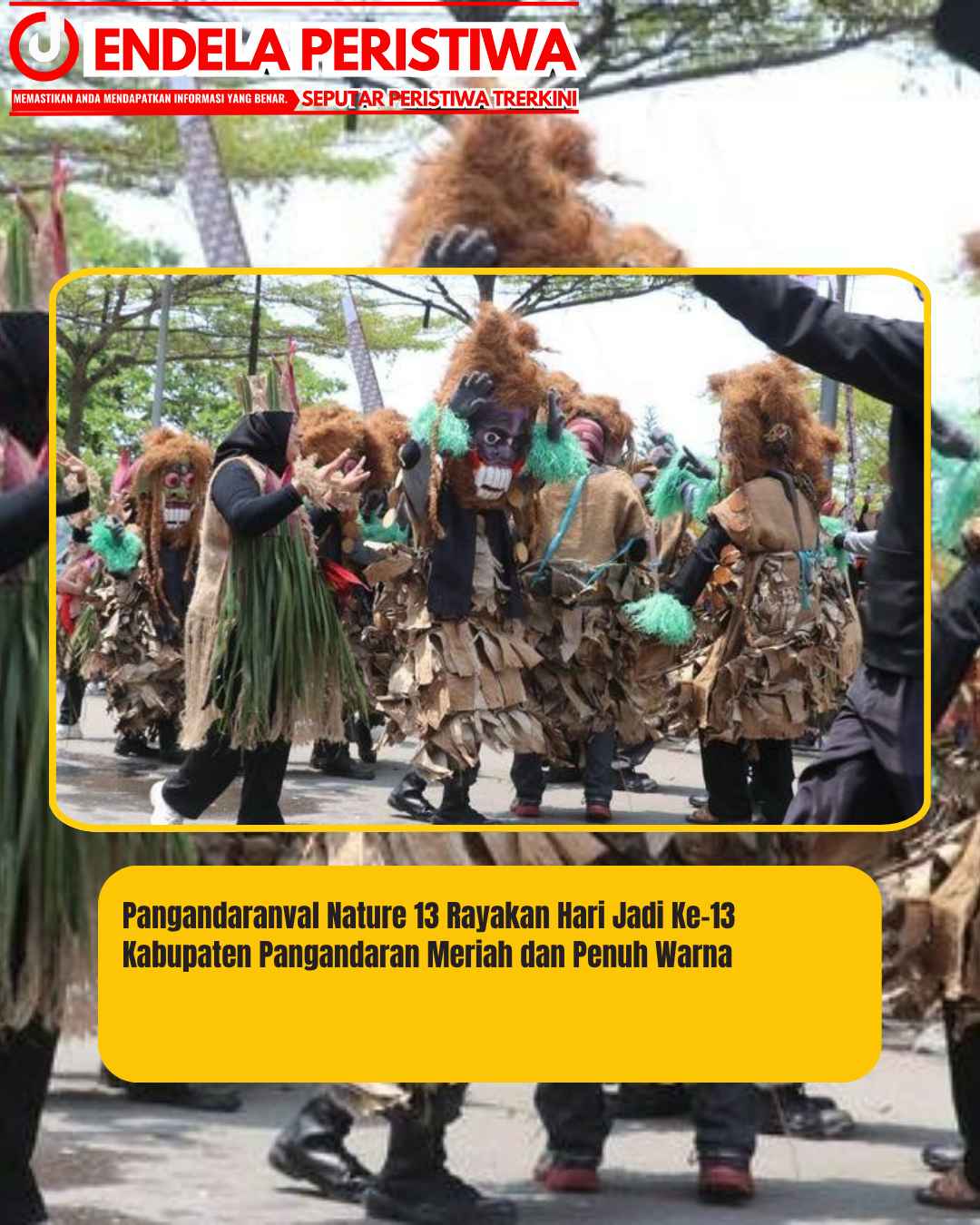 Perwakilan dari 93 desa, 10 kecamatan, serta berbagai instansi di lingkungan Pemerintah Kabupaten Pangandaran turut ambil bagian dalam Karnaval Pangandaranval Nature 13. Gelaran ini dilaksanakan untuk menyambut Hari Jadi Ke-13 Kabupaten Pangandaran.