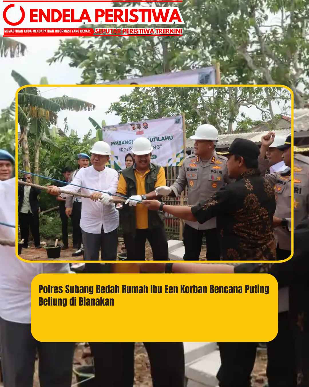 Harapan itu akhirnya datang pada Jumat (9/1/2026). Polres Subang melalui program Bedah Rumah Tidak Layak Huni (Rutilahu) memulai pembangunan rumah baru bagi Ibu Een. Kegiatan kemanusiaan tersebut dipimpin langsung Kapolres Subang AKBP Dony Eko Wicaksono.