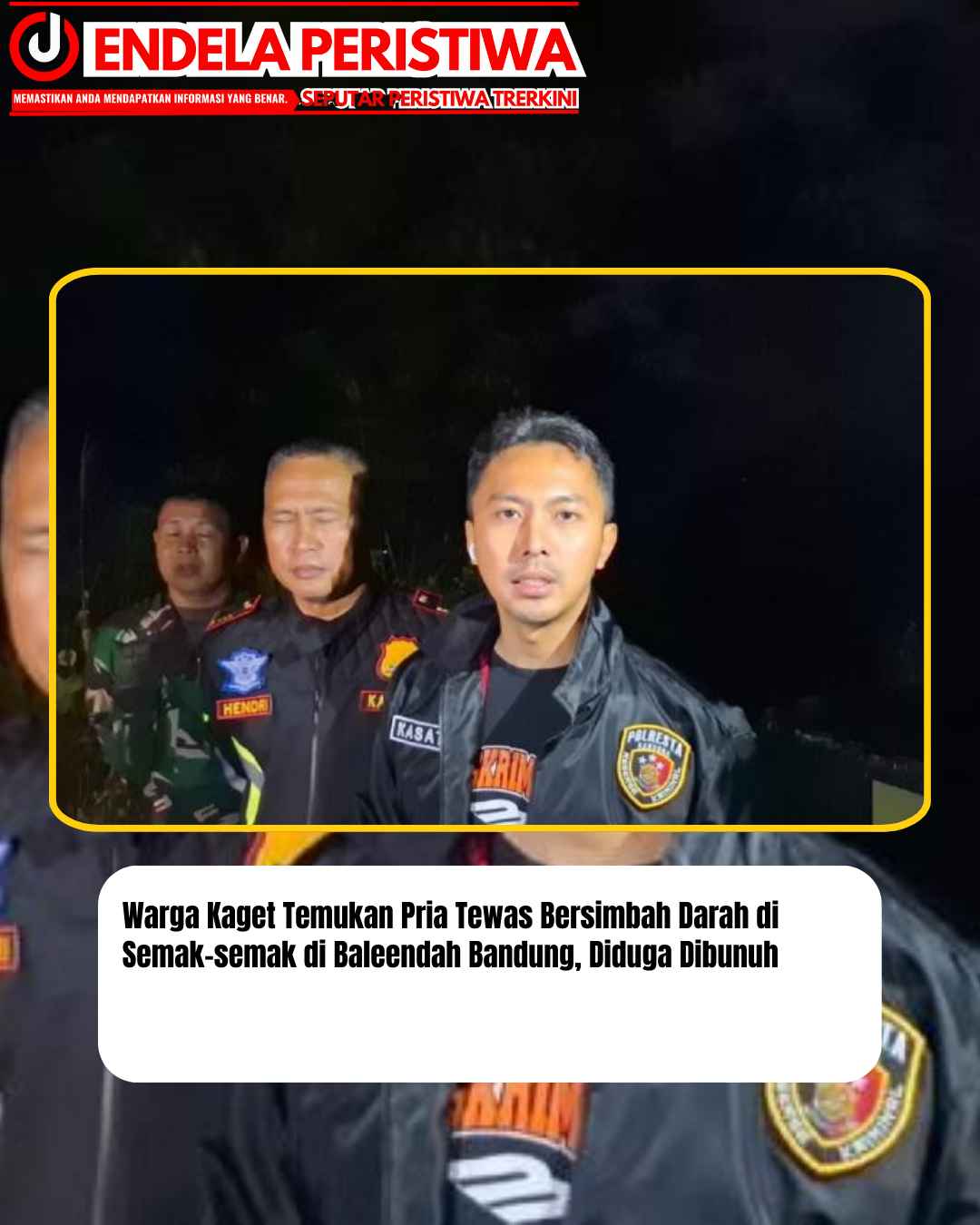 www.JendelaPeristiwa.com.ǁJawa Barat,20 September 2025-Seorang pria ditemukan tewas bersimbah darah di kawasan Tanjakan Benyeng, Kampung Margaluyu, Kelurahan Jelekong, Kecamatan Baleendah, Kabupaten Bandung, Jawa Barat, pada Jumat (19/9/2025) malam.